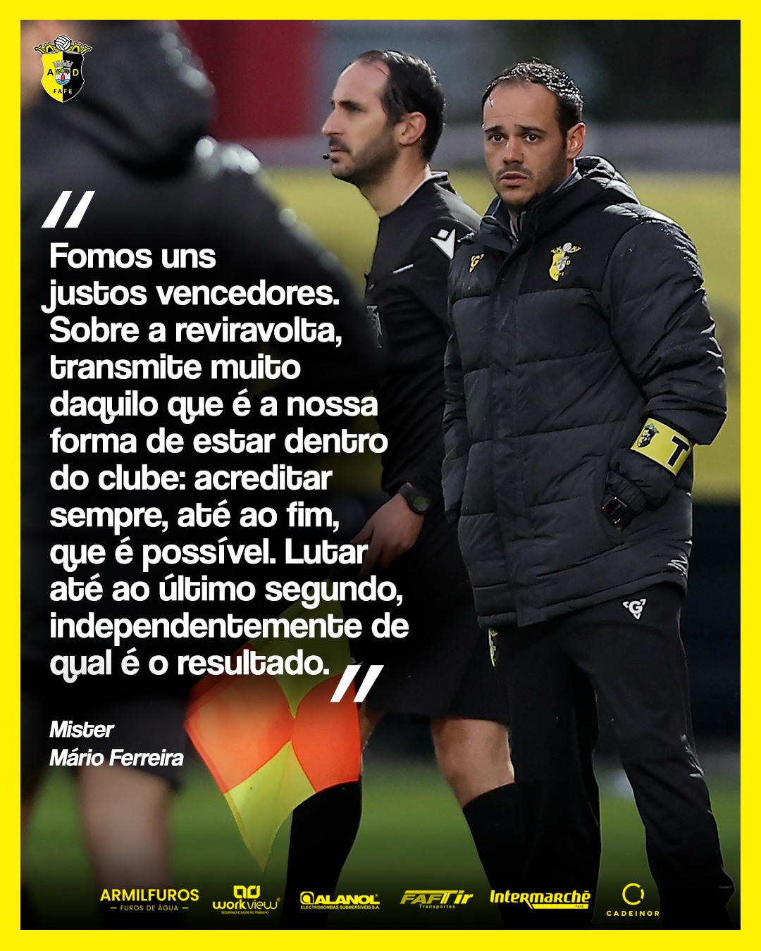 “Fomos uns justos vencedores. Sobre a reviravolta, transmite muito daquilo que é a nossa forma de estar dentro do clube: acreditar sempre, até ao fim, que é possível. Lutar até ao último segundo, independentemente de qual é o resultado”, referiu o treinador Mário Ferreira, em conferência de imprensa, no final do jogo.