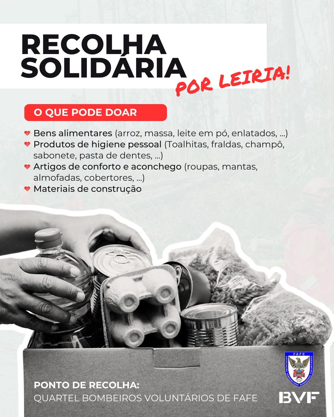 Os Bombeiros Voluntários de Fafe estão a organizar uma recolha solidária para apoiar a população de Leiria, após a tempestade que assolou a região.