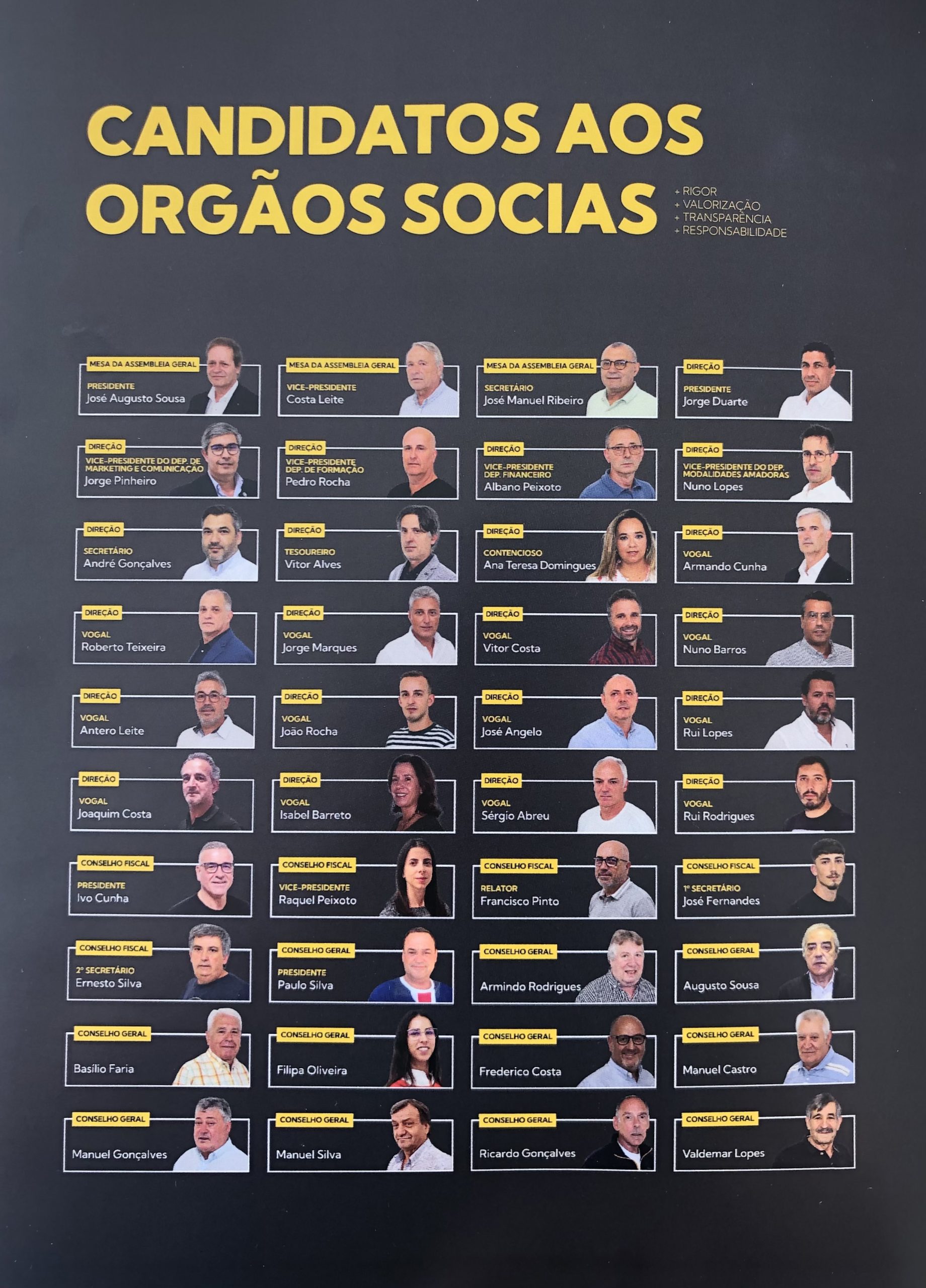 Sob o lema “Unidos pelo futuro. Inspirados pela tradição. Vamos fazer história”, a candidatura foi apresentada esta segunda-feira e conta com Jorge Duarte como candidato a presidente da direção, José Augusto Sousa a presidente da mesa da assembleia geral; Ivo Cunha ao conselho fiscal e Paulo Silva ao conselho geral.