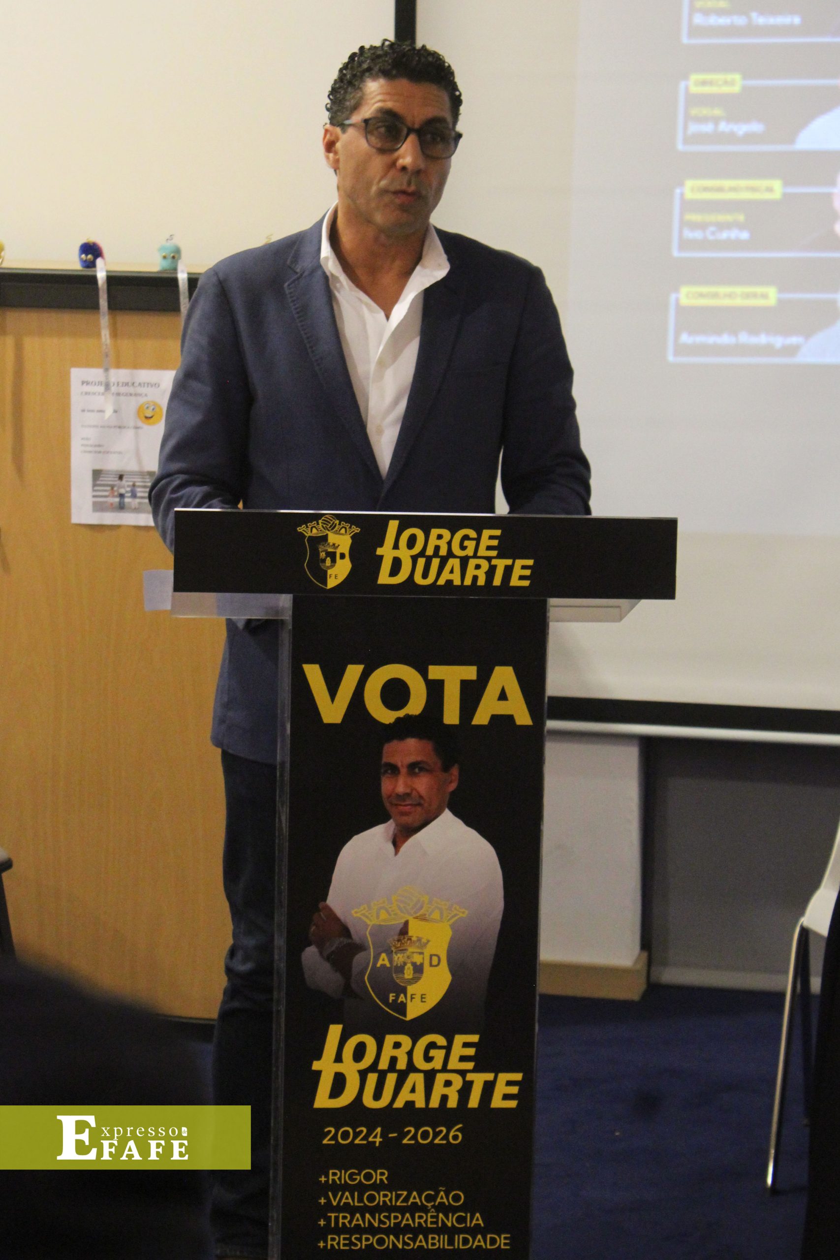 “Esta candidatura nasce do coração, surge da insatisfação, mas também do amor incondicional por este clubeque tantas alegrias nos deu. É um projeto que não é apenas uma candidatura, mas uma promessa de renovação, de crescimento e de vitórias. Apresentamo-nos como uma alternativa para recuperar a credibilidade e dignidade que o clube tem vindo a perder nos últimos anos”, expressou Jorge Duarte.