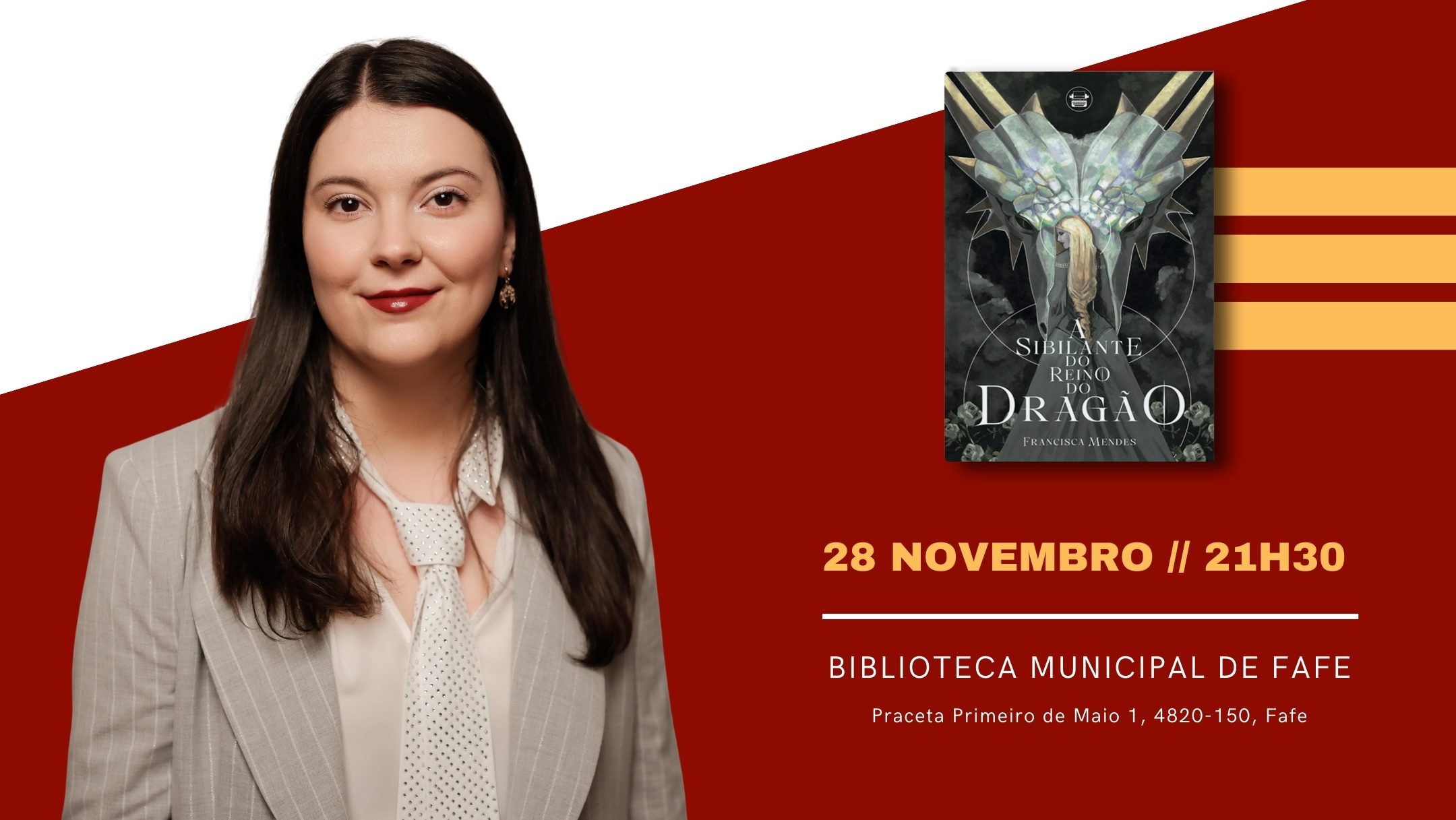 A escritora fafense Francisca Mendes vai apresentar o seu novo romance, “A Sibilante do Reino do Dragão”, na próxima sexta-feira, 28 de novembro, pelas 21h30, na Biblioteca Municipal de Fafe.
