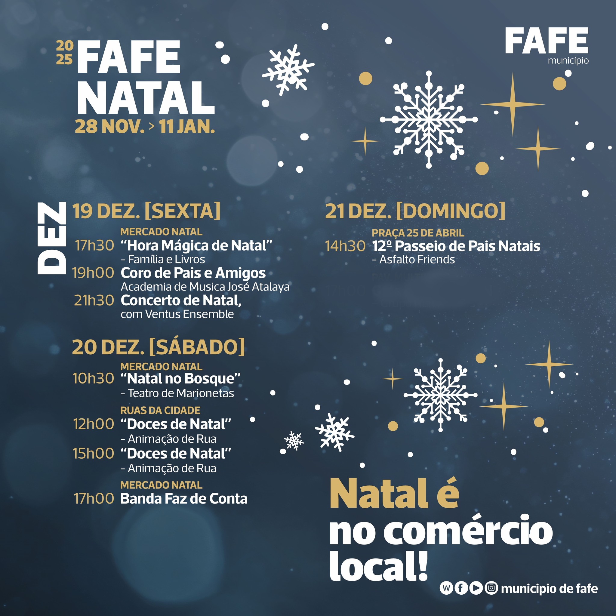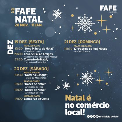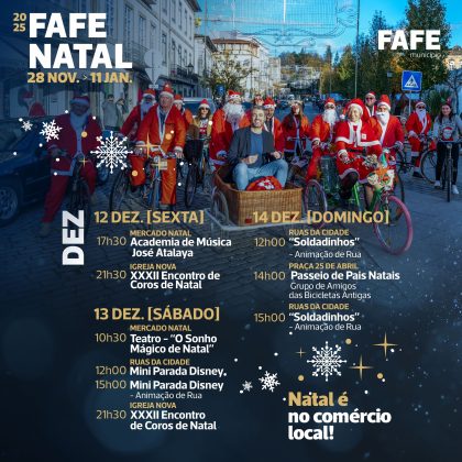 Até ao Dia de Reis, a programação “FAFE NATAL 2025” promete voltar a “transformar o centro da cidade num palco de luz, música, animação e espírito festivo”, esperando com isso atrair milhares de visitantes.