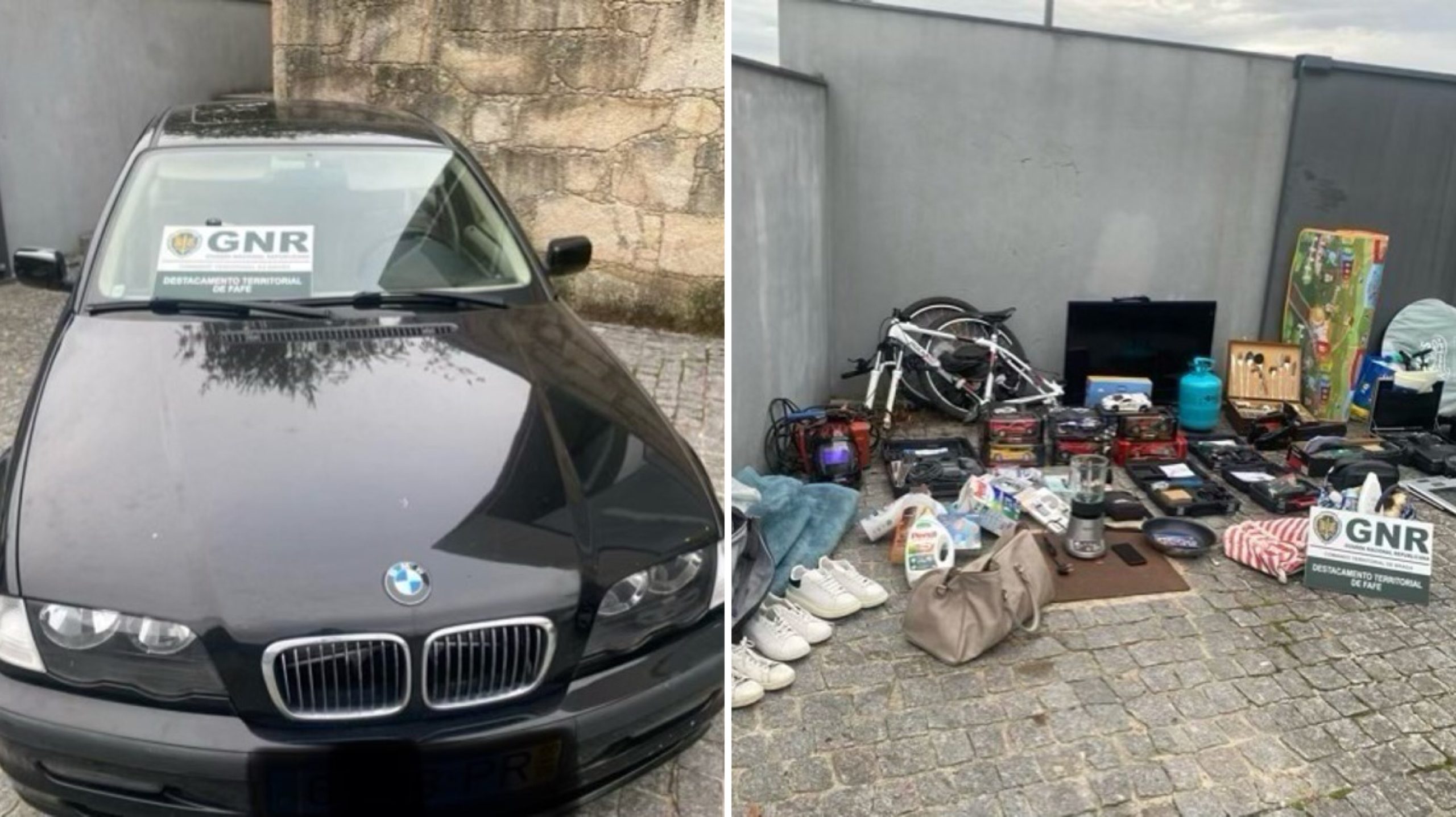A GNR encetou então diligências que permitiram localizar, recuperar e apreender a referida viatura, bem como diversos artigos encontrados no seu interior, dos quais se destacam uma televisão, uma bicicleta, uma moto-serra, uma botija gás, uma tenda campismo, artigos de cozinha e ferramentas.