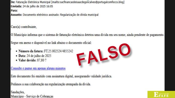 “Informamos que está a circular um email falso que utiliza indevidamente o nome do Município. É pedido que se carregue num link para pagar uma suposta dívida. Estas mensagens são falsas e não são provenientes do Município de Fafe, permitindo aos seus autores obter ilegitimamente valores decorrentes de supostas dívidas ao Município”, explicam, em comunicado.