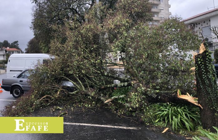 A maioria das ocorrências diz respeito a quedas de árvores, 5 no total. Uma das quais ocorreu na Urbanização Engenheiro Mário Valente, em Fafe, atingindo pelo menos uma viatura que estava estacionada, como retrata a imagem.