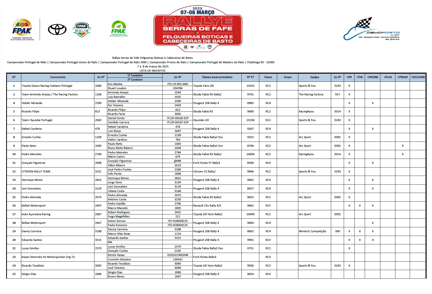 “Muito embora a lista da prova organizada pelo Demoporto – Clube de Desportos Motorizados do Porto não seja tão extensa como as das edições precedentes, já que o total é agora de 44, incluindo as duplas do Campeonato Promo, não deixará de apresentar um excelente nível. Só carros da categoria Rally2 haverá nada menos que 16”, lê-se em comunicado.